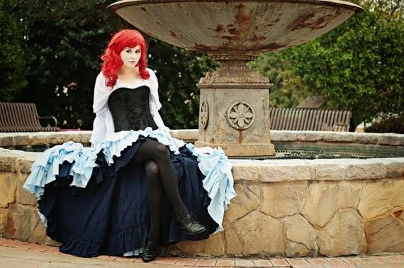 This Little-Mermaid-Inspired Steampunk look makes sure you are ready to explore the world above! With flowing cotton skirts, floaty sleeves, and a snug and comfy corset, you are ready to try out your land legs and explore new cities!